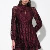 It features a nude-colored base fabric that is overlaid with a sheer navy mesh and adorned with a large, intricate, floral embroidery pattern in navy. The dress has a flattering midi length and a pencil-style silhouette that is fitted through the waist and hips.