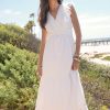 Adelyn Rae Women’s Adaline Floral Lace Trim Maxi Dress | White