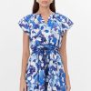 The “Aeila Dress” is defined by it’s floral print and relaxed silhouette. The design features a braided waist belt with tassels and a notched neckline with a button closure. The mini dress is finished with flutter sleeves and a contrasting waist band.