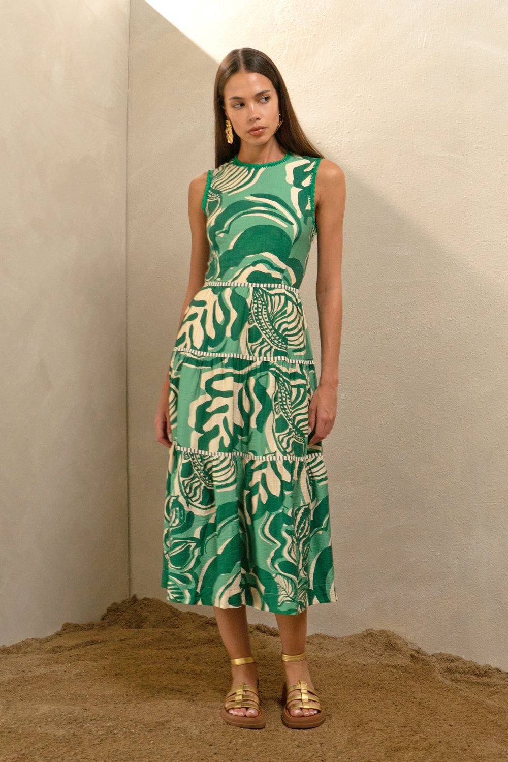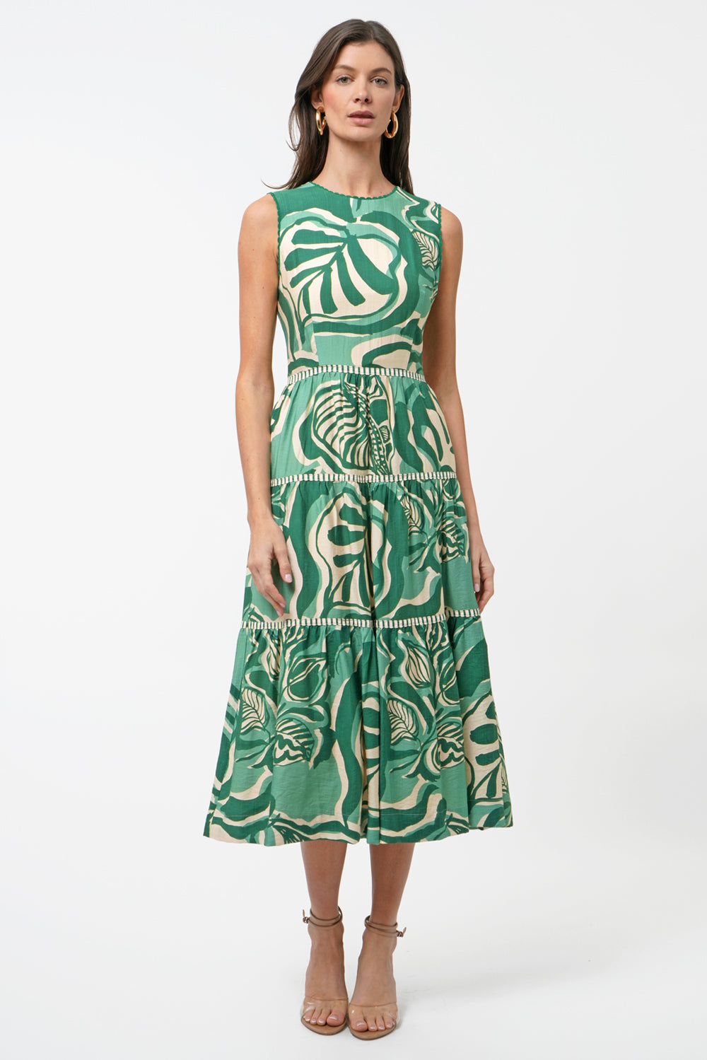 Breezy and effortless—the Alva Leaf Print Tiered Maxi Dress is your go-to for sun-soaked days and dreamy evenings. Featuring a delicate leaf print in soft, earthy tones, this flowy silhouette moves with you, thanks to its tiered skirt and lightweight fabric. A smocked bodice ensures a flattering fit and a feminine touch.
