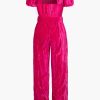 This textured velvet jumpsuit embraces the 70’s inspired glamour. Designed in a crew neckline, puff sleeves, belt and belt loops, a wide leg, and side pockets this jumpsuit will have you feeling groovy.