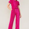 This textured velvet jumpsuit embraces the 70’s inspired glamour. Designed in a crew neckline, puff sleeves, belt and belt loops, a wide leg, and side pockets this jumpsuit will have you feeling groovy.