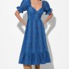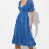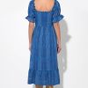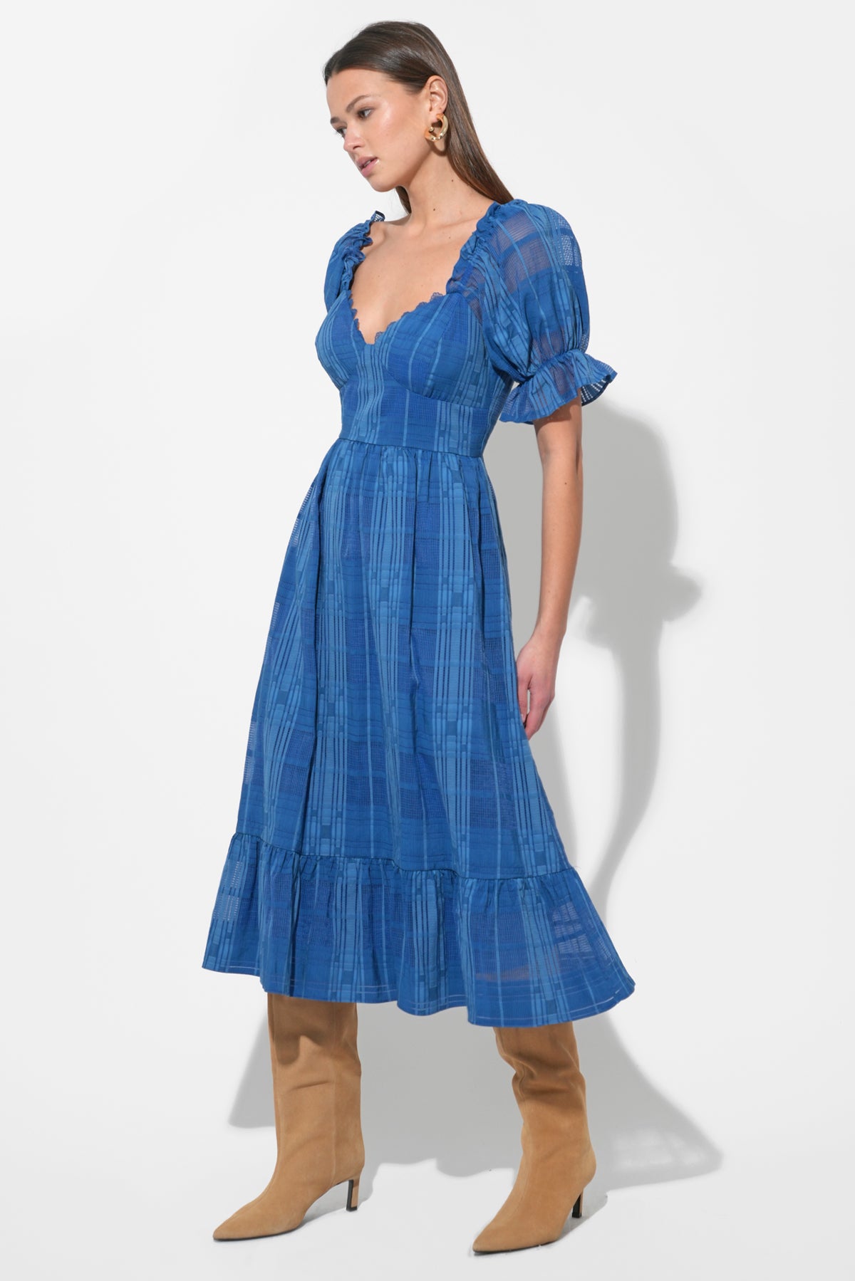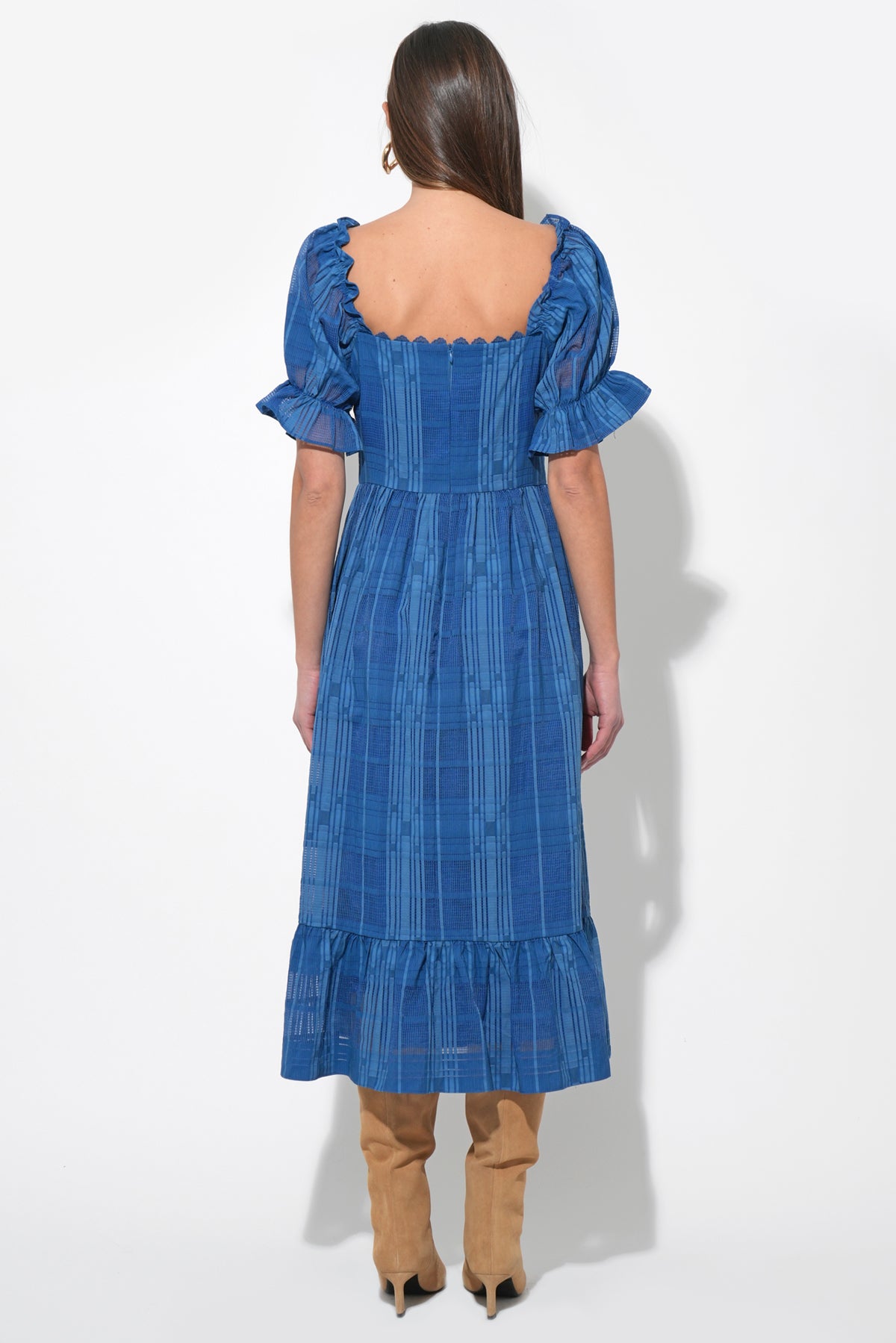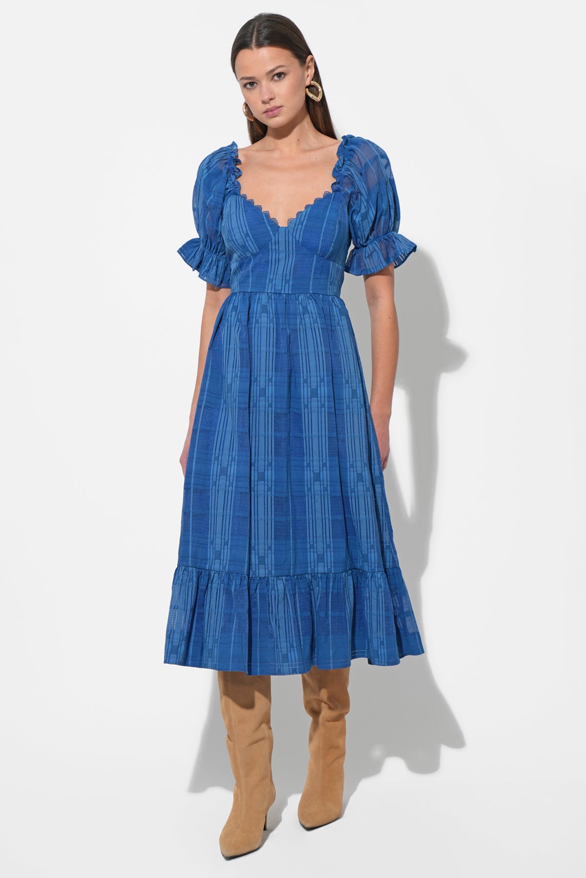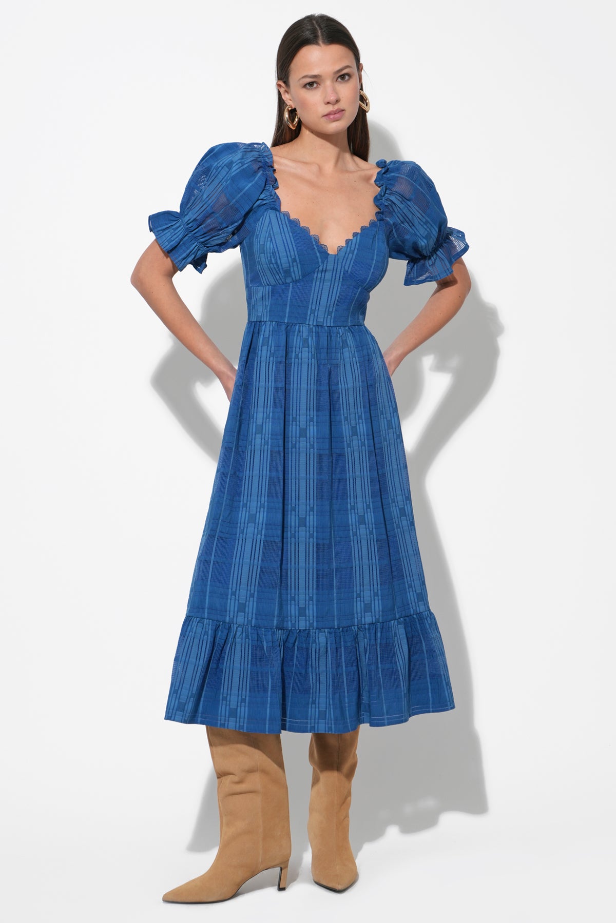 Adelyn Rae Women’s Betsey Puff Sleeve Jacquard Striped Maxi Dress | Marine Blue