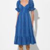 Adelyn Rae Women’s Betsey Puff Sleeve Jacquard Striped Maxi Dress | Marine Blue