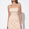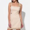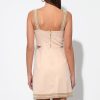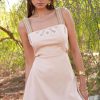 This exquisite dress in a delicate blush or sand hue features stunning, intricate embroidery in a contrasting natural tone across the square neckline and along the hem, creating a beautiful border. The wide, braided-effect straps add a unique textural element.
