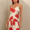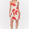Adelyn Rae Women’s Camila Abstract Rose Print Pleated Mini Dress | Cream & Red