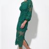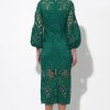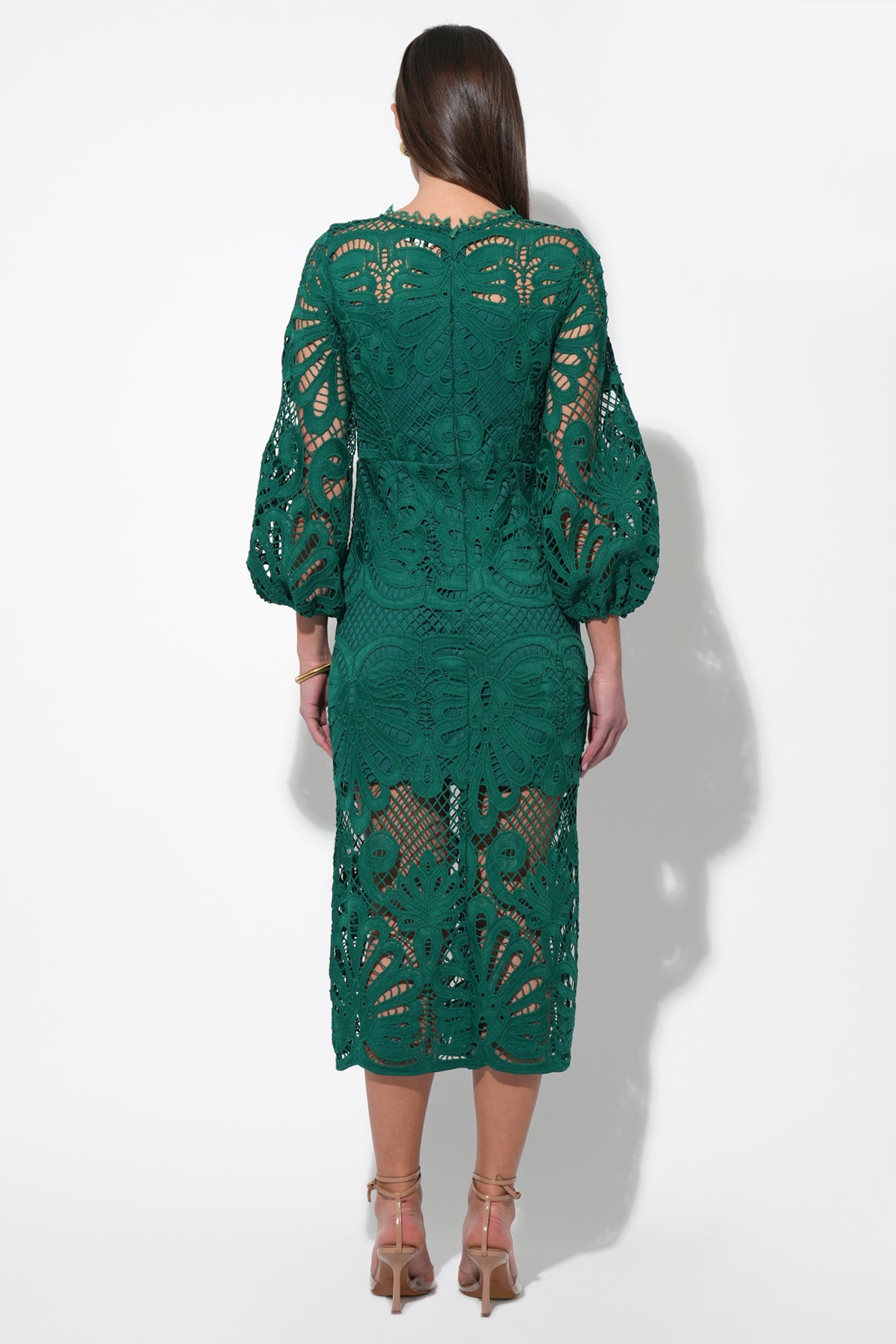 This captivating midi dress comes in a vibrant, eye-catching pink hue that radiates charm and confidence. It features a flattering V-neckline and exquisite puff sleeves crafted from delicate lace, adding a touch of romantic elegance.