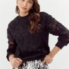Lace blouse with a pullover sweater structure. This piece can be styled with any bottoms for a classy touch.