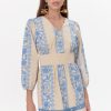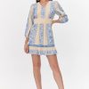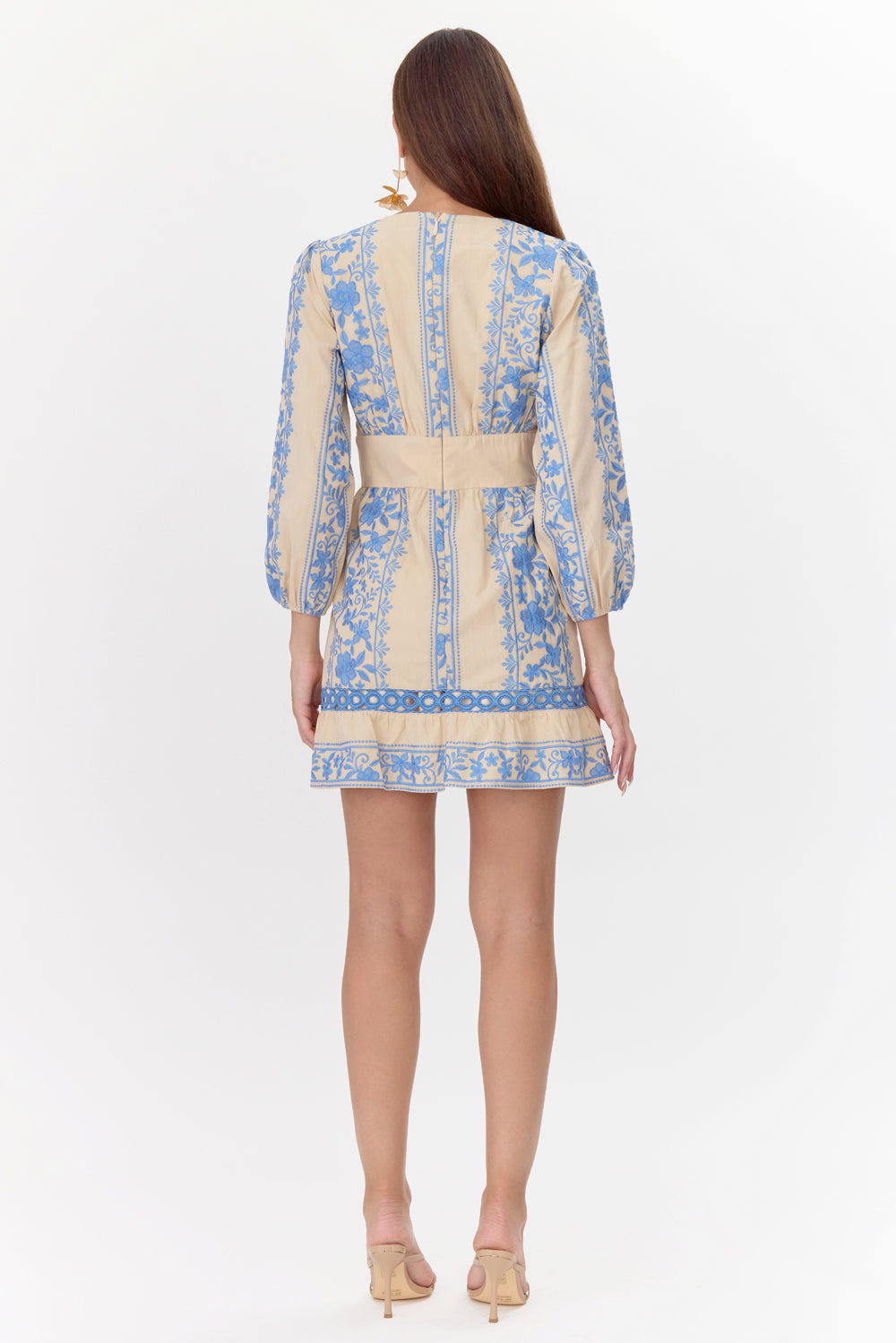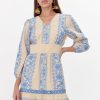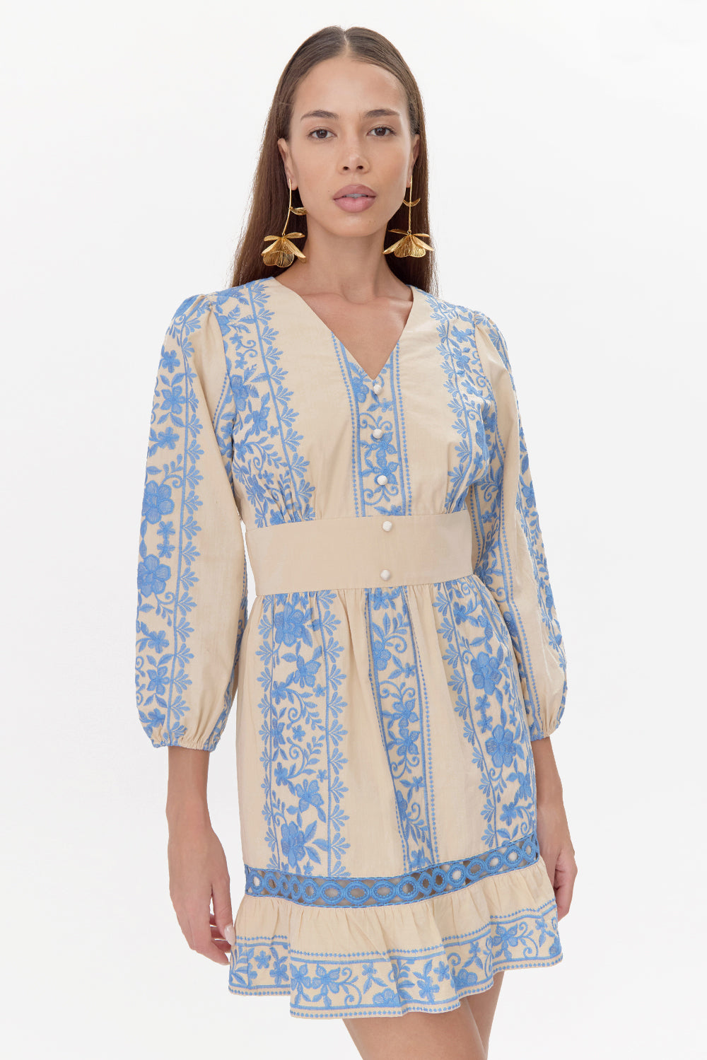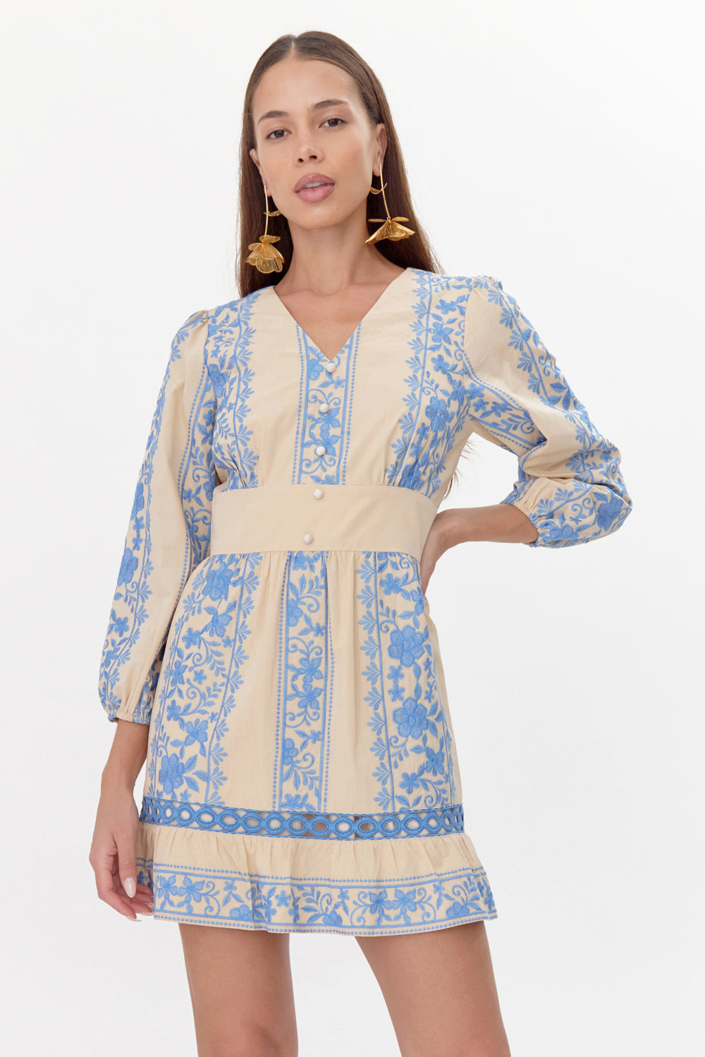 Adelyn Rae Women’s Frida Embroidered Mini Dress | Beige & Blue