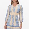 Adelyn Rae Women’s Frida Embroidered Mini Dress | Beige & Blue