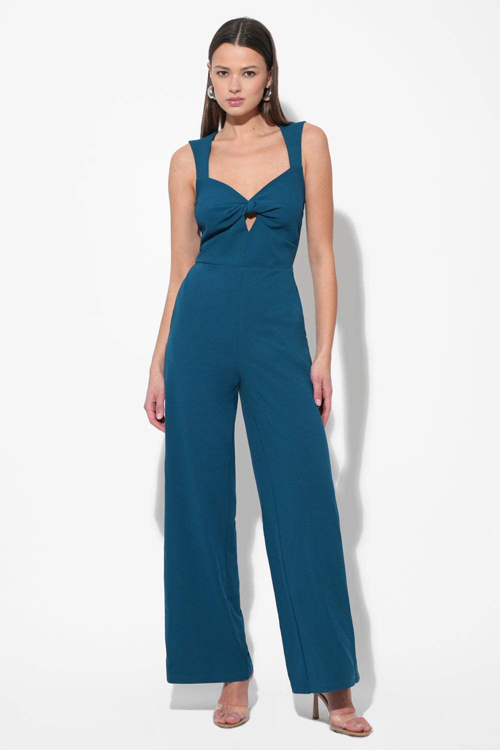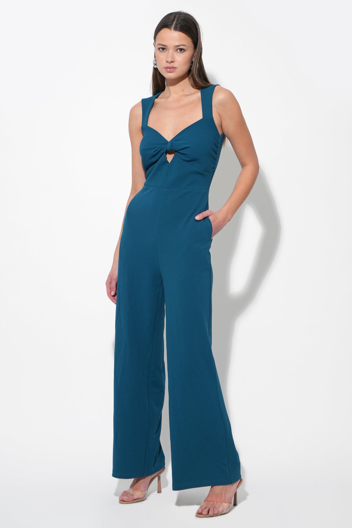 This stunning full-length jumpsuit is crafted from a soft, possibly ribbed knit fabric in a versatile beige hue, ensuring both style and supreme comfort. It features a beautifully sculpted sweetheart neckline and a fitted bodice that gracefully transitions into chic wide-leg pants, creating a long and flattering silhouette.