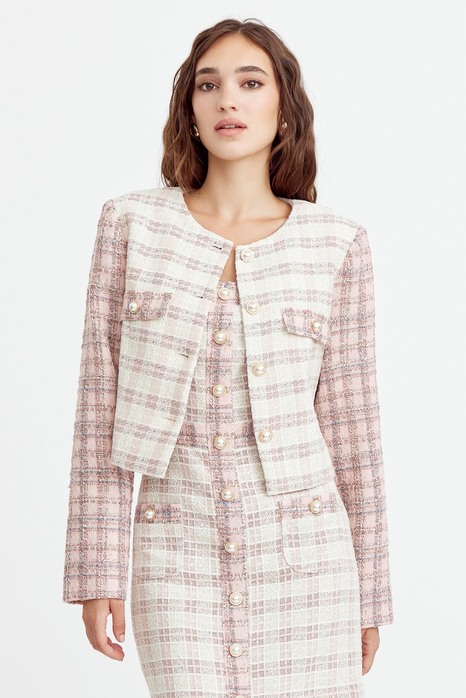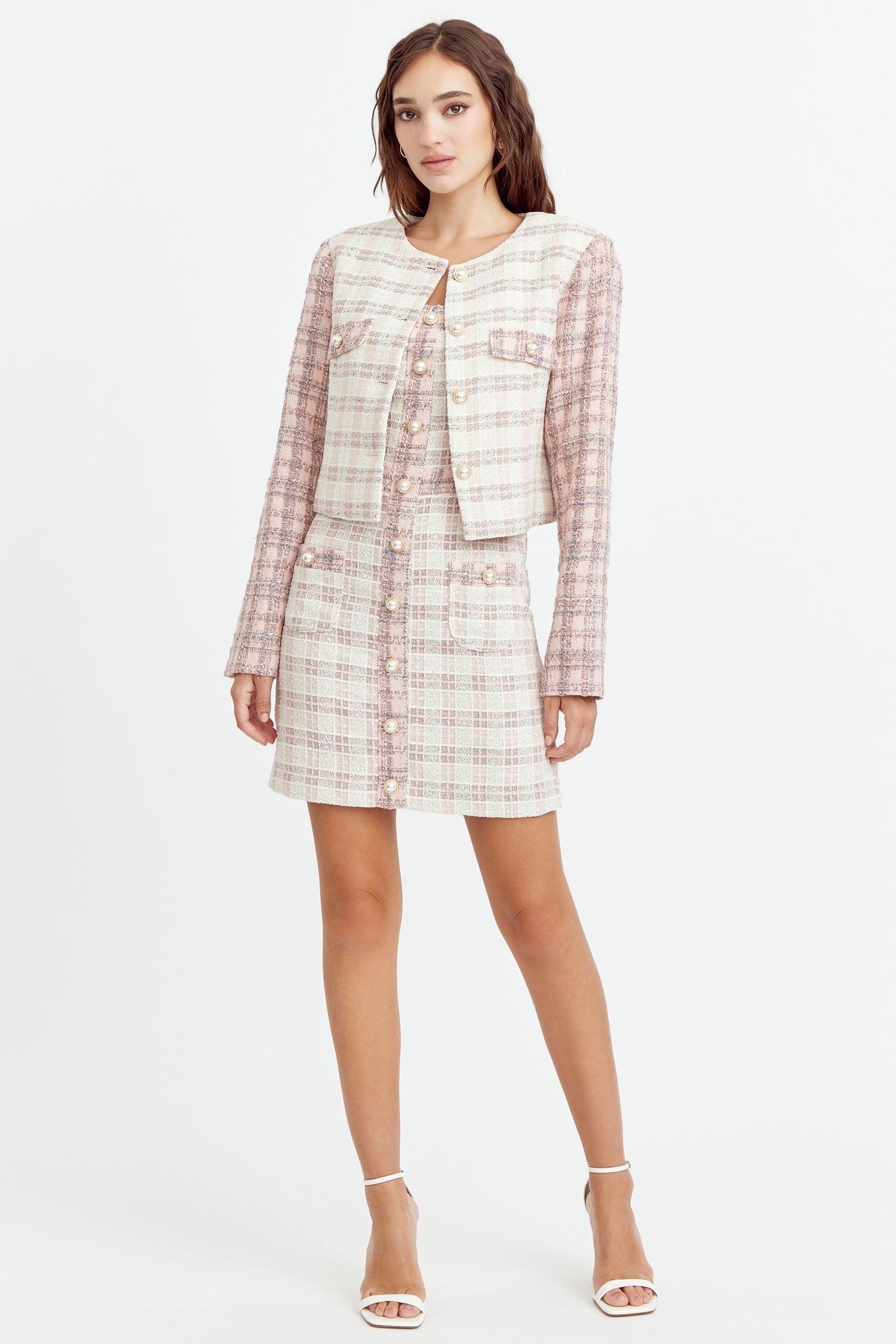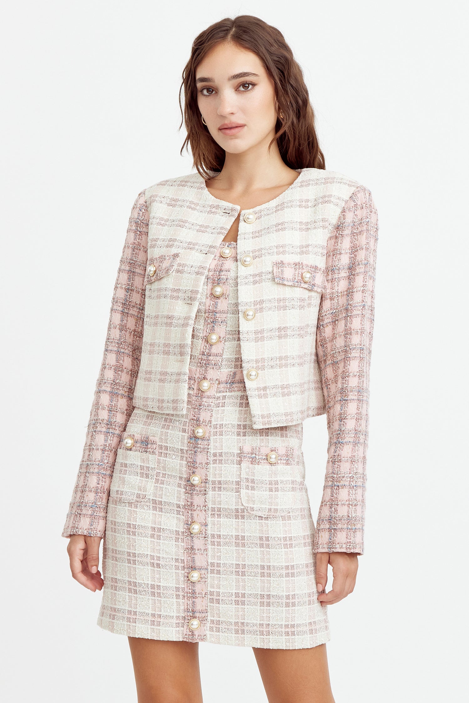 Adelyn Rae Women’s Jai Mix Tweed Blazer | Ivory Pink