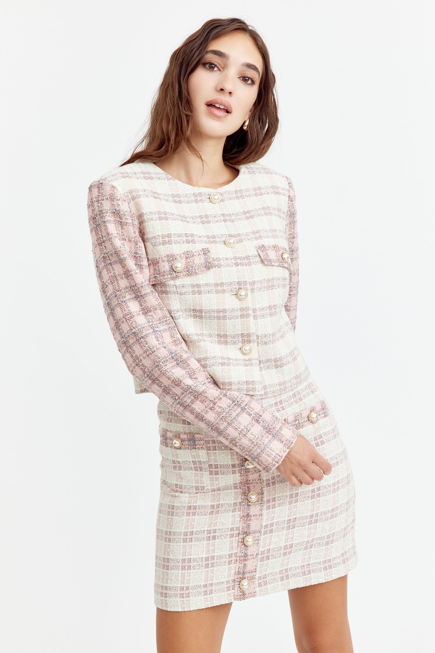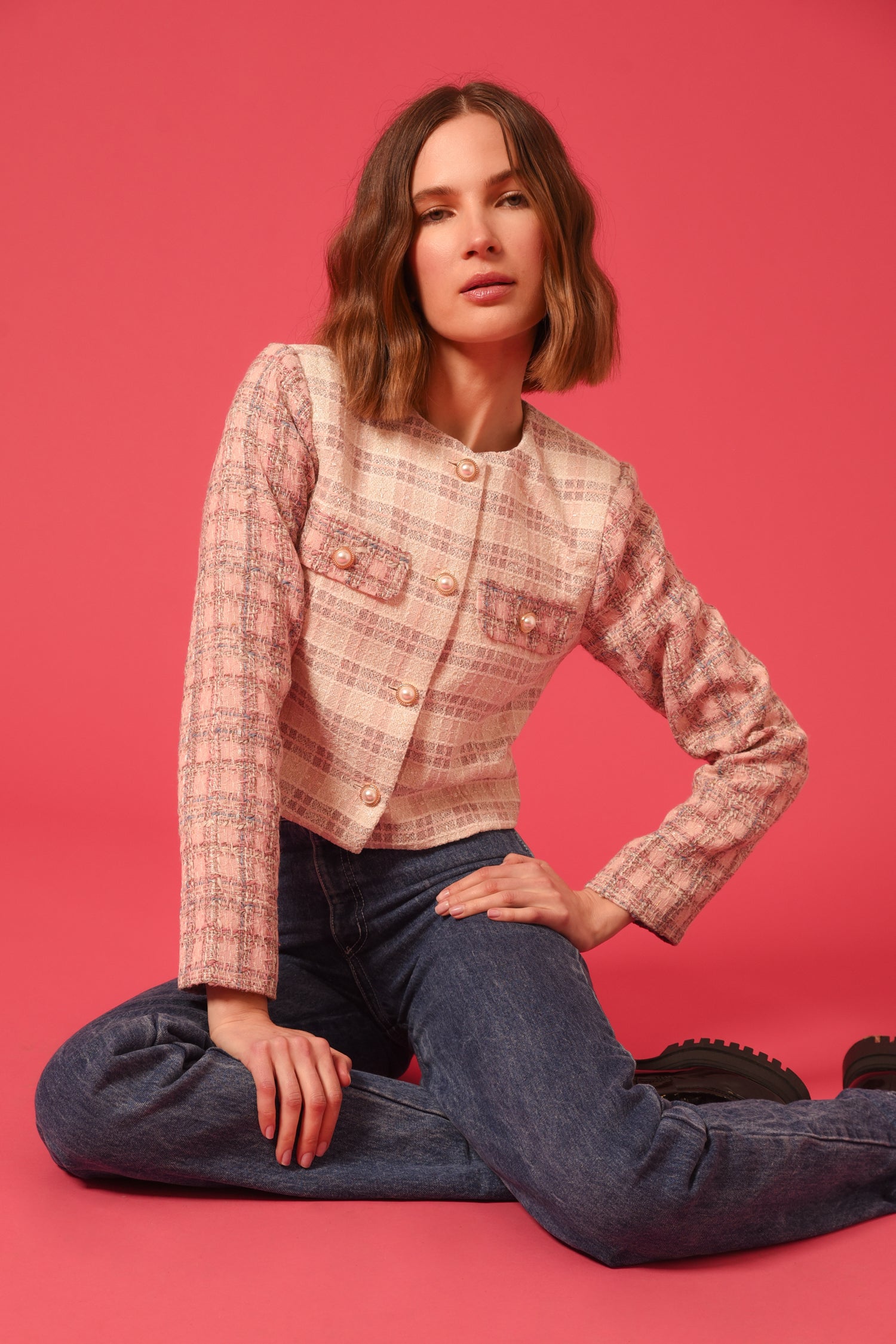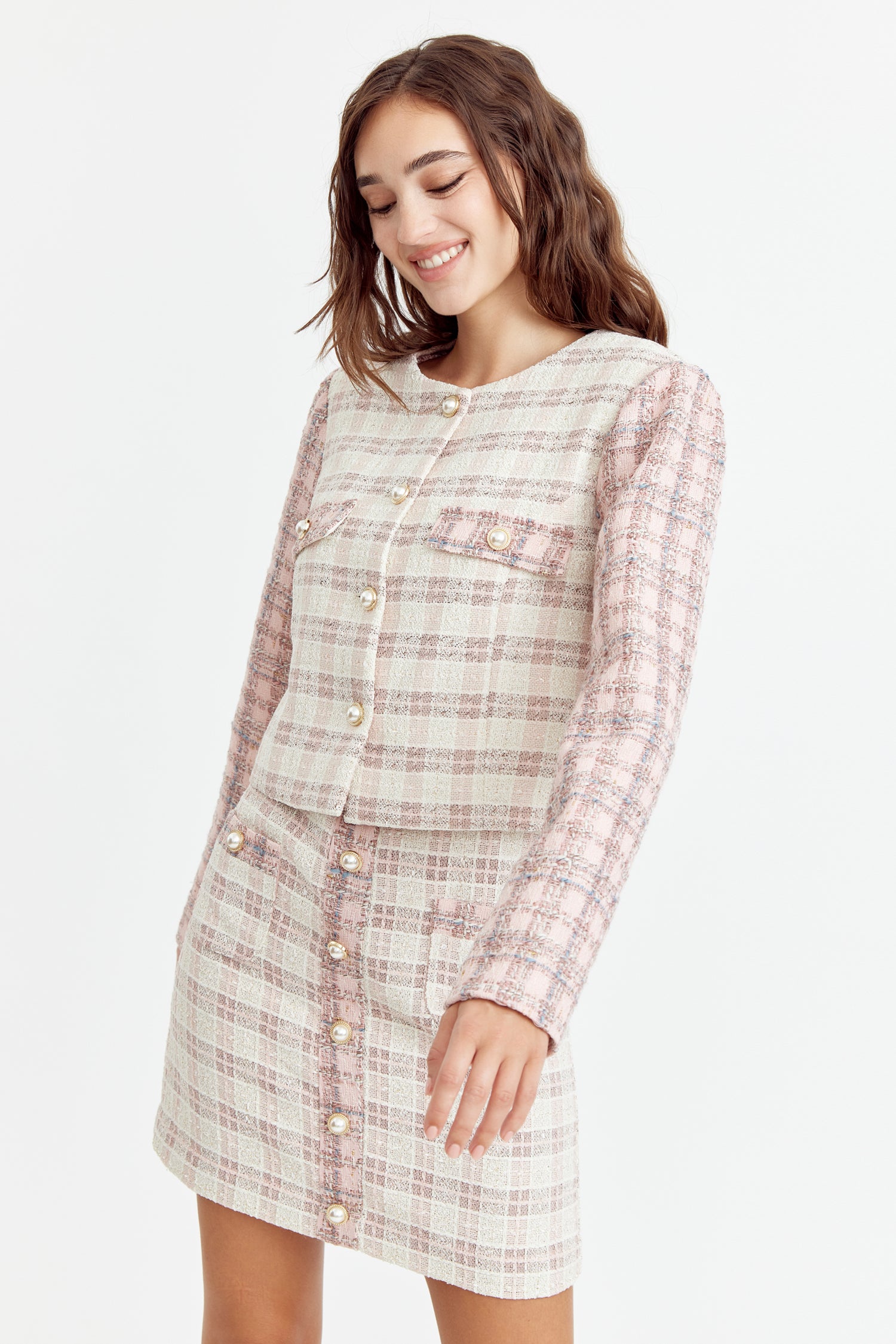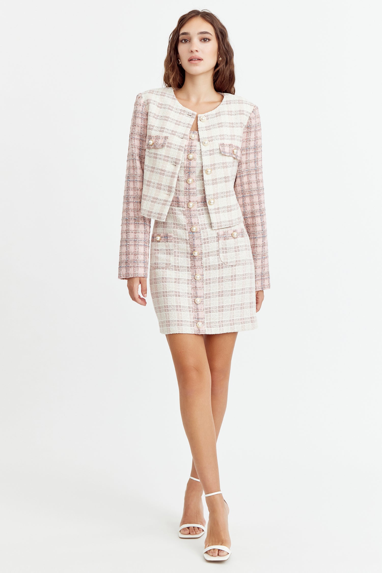 Adelyn Rae Women’s Jai Mix Tweed Blazer | Ivory Pink