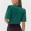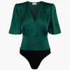 The pintucked bodysuit features short, flutter sleeves and a flattering V-neckline. Wear with a midi skirt for a full elegant look or let it add class to any pair of trousers or pants.