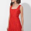 Designed with a sleek square neckline and a body-skimming silhouette, this mini dress is the perfect balance of sophistication and allure. The intricate 3D lace overlay adds a touch of romance. Installed with a back zipper closure.
