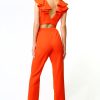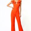 Adelyn Rae Women’s Kassi Ruffled Crepe Jumpsuit | Blood Orange