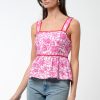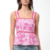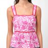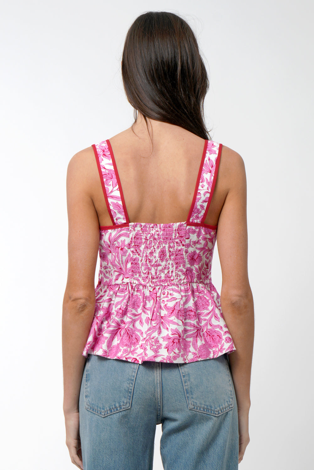 The Luna Peplum Top is your fresh pop of color for the season—featuring a bold magenta floral print, contrast piping, and a flattering square neckline. With wide straps, a smocked back for comfort, and a breezy peplum hem, this top is made for movement (and compliments).