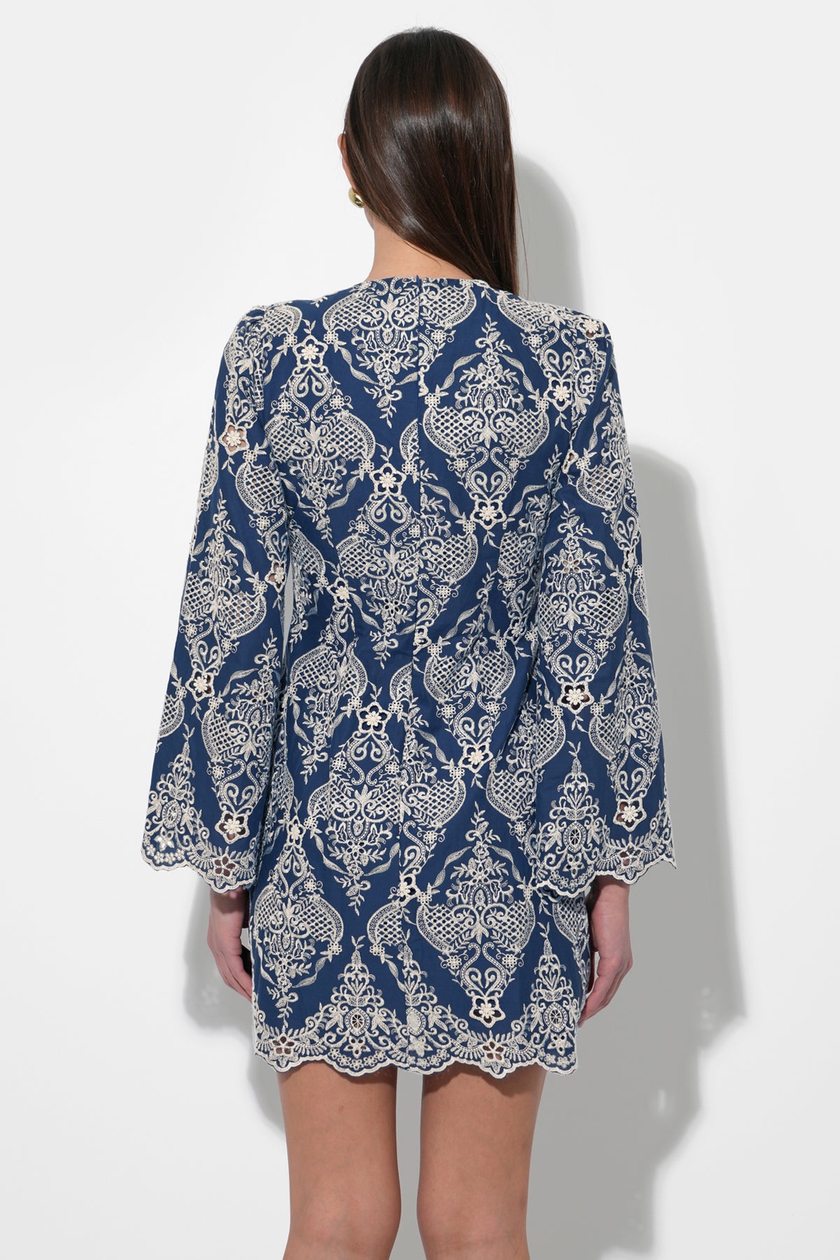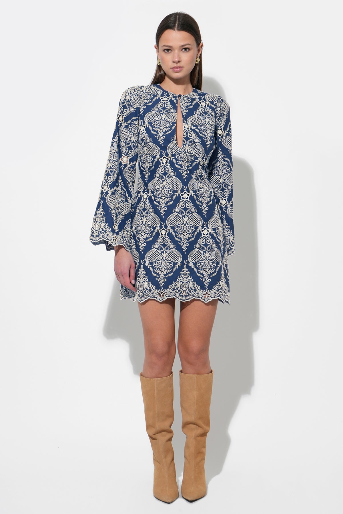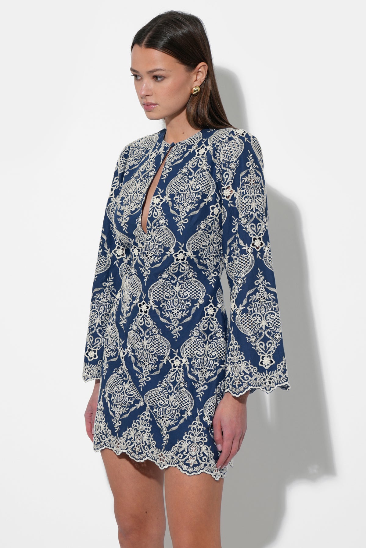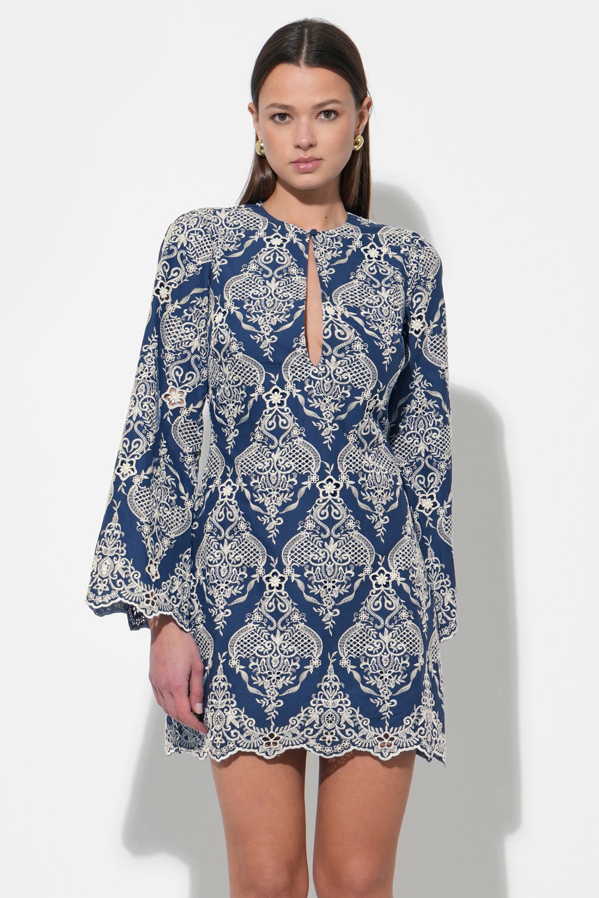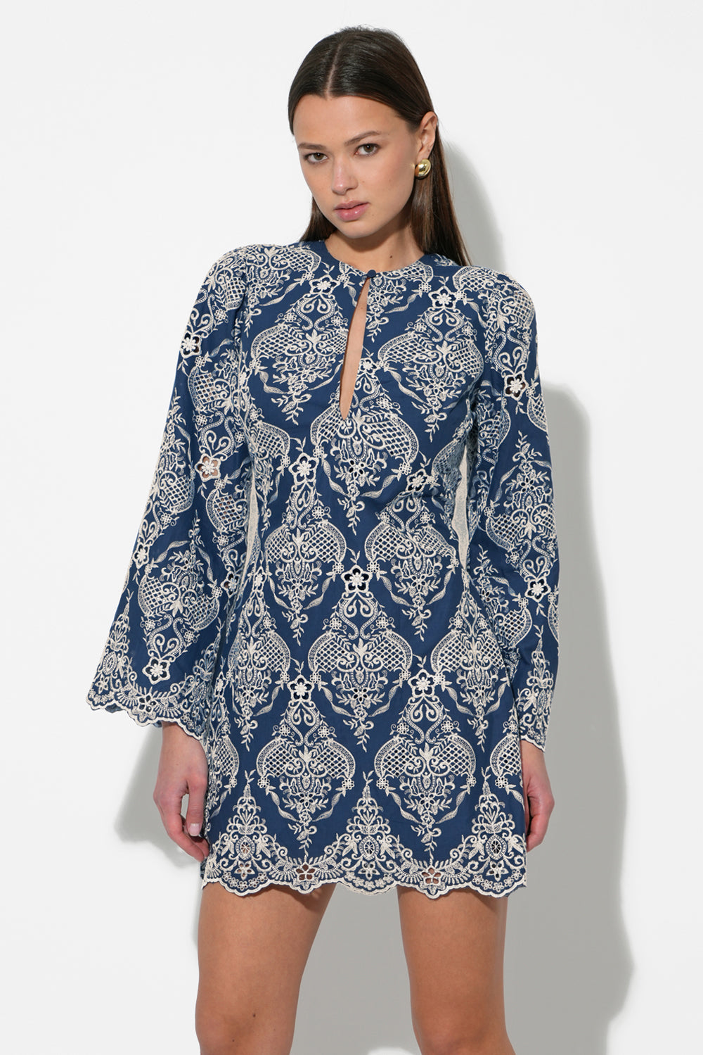 Adelyn Rae Women’s Marcie Keyhole Neckline Lace Mini Dress | Navy