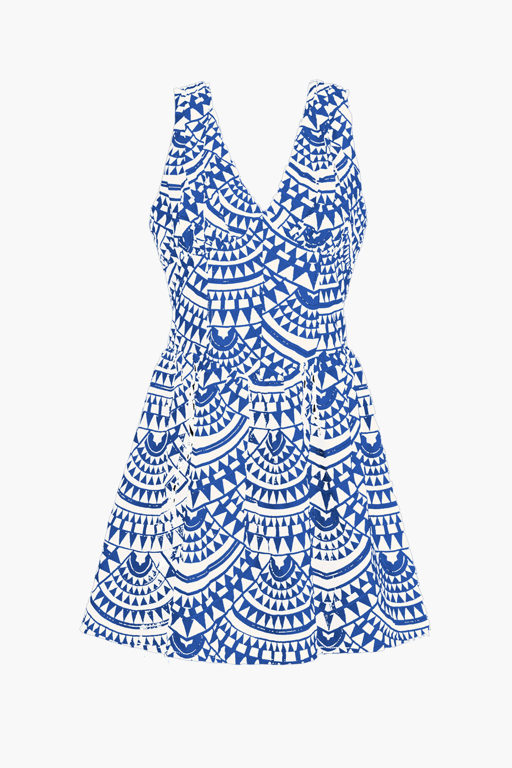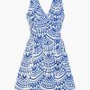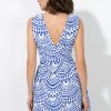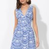 Adelyn Rae Women’s Maris Cotton Crochet Piped Mini Dress | Ivory & Blue