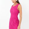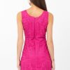 Sleeveless, lace dress with a floral pattern. Rendered in a deep pink, the garment falls to a short length and show’s off a classy structure that’s suitable for most special occasions.