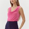 Velvety bodysuit installed with a dramatic cowl neckline. The sides are taken in to give the body a draped texture.