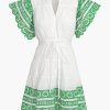 Meet your sunshine-ready stunner. The Isla Dress is a white mini with bold green embroidery and eye-catching scalloped trim on the sleeves and hem. The flutter sleeves bring the drama, while the adjustable tie waist gives you that effortless cinch. Made from lightweight cotton, it’s breezy, flattering, and fun.