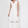 Designed with delicate lace paneling, a flattering faux-wrap bodice, and a tiered skirt that flows with every step, this dress was made for twirling. The scalloped edges and peekaboo details add a touch of whimsy, while the lightweight fabric keeps things breezy.