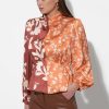 This sophisticated long-sleeve blouse makes a striking statement with its chic two-toned design, featuring a rich, darker-hued body beautifully contrasted by crisp, lighter-toned sleeves and a refined mock neck. Designed with a relaxed fit, it offers both comfort and modern elegance.