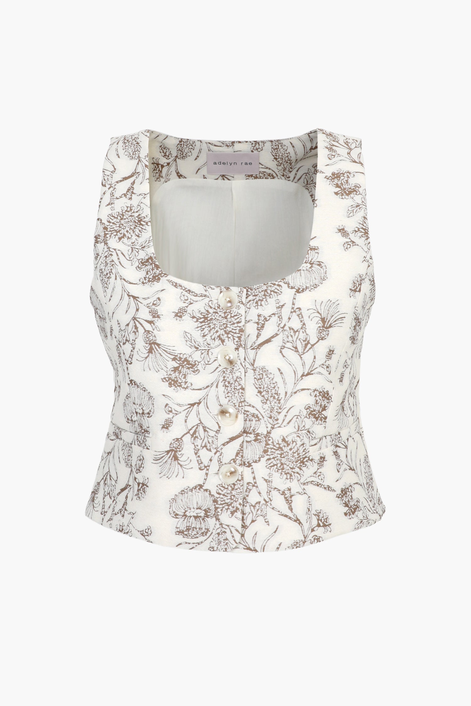 Designed in matching separates, this button-front top is thoughtfully designed for an interseasonal wardrobe. The design is cut in a refreshing, cropped silhouette and a natural palette. Dress up or down and for a summery statement, pair with the Sheena Jacquard Shorts.