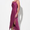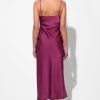 This stunning midi-length slip dress, in a captivating vibrant pink hue, drapes beautifully to flatter every curve. It features a luxurious cowl neckline that softly cascades, exuding refined allure, and delicate spaghetti straps for a minimalist yet chic appeal.