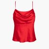 This cowl neck cami in red satin is the perfect addition to any wardrobe. The classic cami is ideal for dressing up or down with any outfit. The cowl neck ensures a flattering finish.