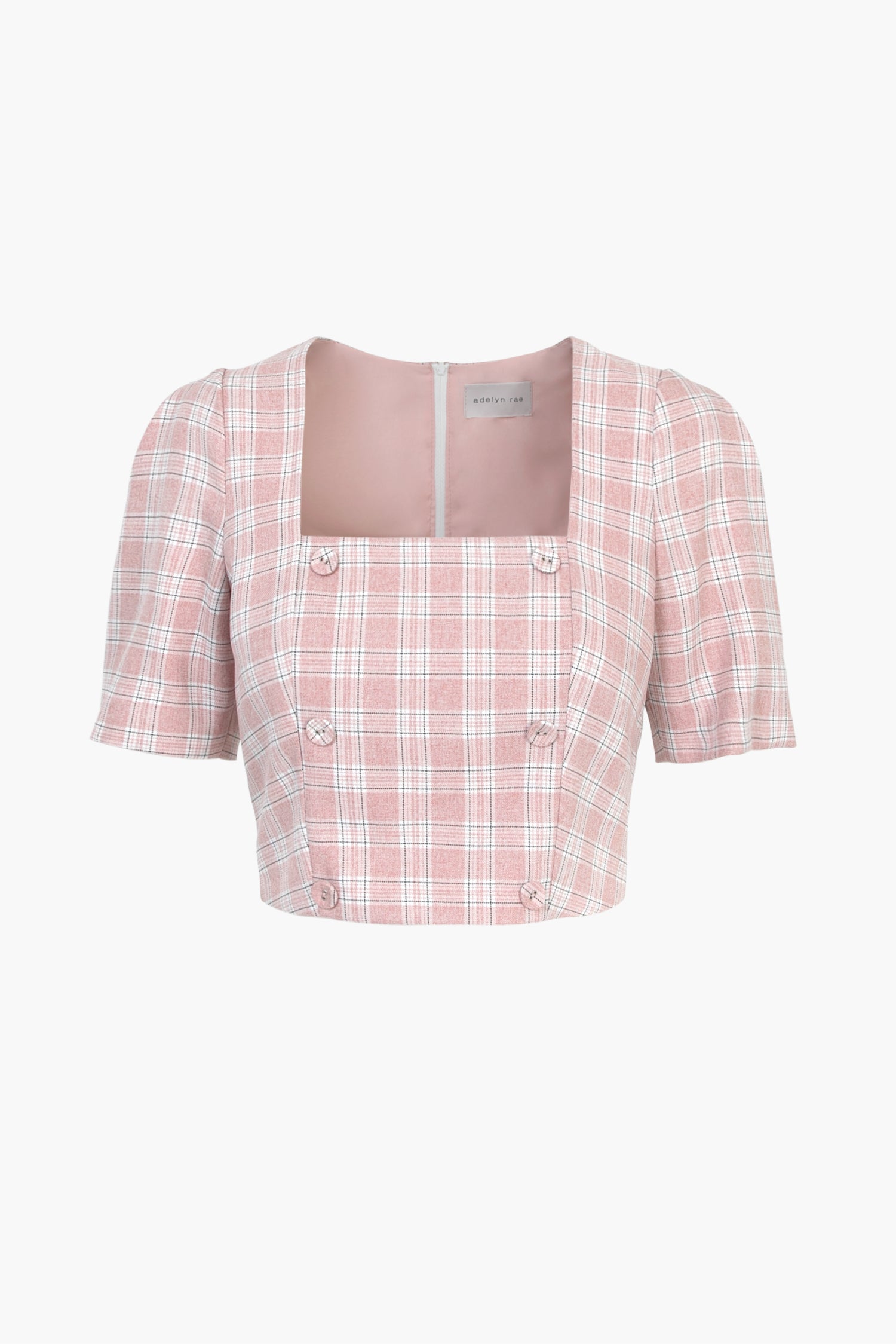 Channel your inner Emily in Paris in the Violet Plaid Crop Top! This plaid crop top is designed with a square neckline, a front double-breasted detail, and finished with a zipper along the back. Pair with our Violet Plaid Front Pleat Trouser Shorts for a full-on Parisian look.
