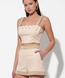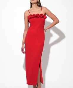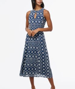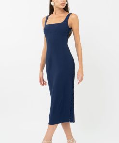 Adelyn Rae Women’s Shanna Embroidered Scalloped Cotton Midi Dress W/ Lace Up Back | Linen & Blue